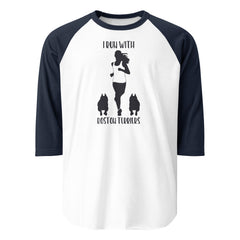 I Run With Boston Terriers 3/4 Sleeve Raglan Shirt . White Navy