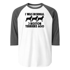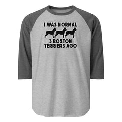 I Was Normal 3 Boston Terriers Ago 3/4 Sleeve Raglan Shirt . Heather Grey Black