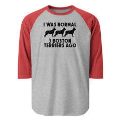 I Was Normal 3 Boston Terriers Ago 3/4 Sleeve Raglan Shirt . Heather Grey Heather Red