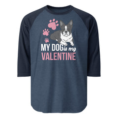 My Dog Is My Valentine 3/4 Sleeve Raglan Shirt . Heather Denim Navy