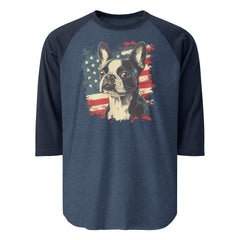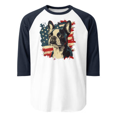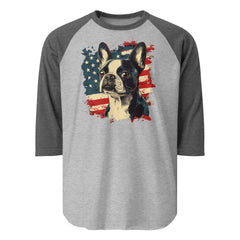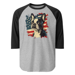USA Flag United States Boston Terrier Dog 3/4 Sleeve Raglan Shirt