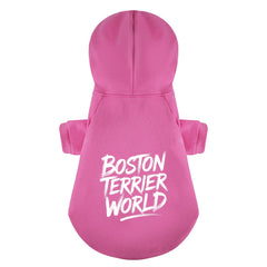 Keep your pup cozy and stylish with the Boston Terrier World Wicked Pup 100% Cotton Dog Fleece Hoodie! 🐾✨ Designed for comfort and warmth, this soft fleece hoodie is perfect for keeping your dog snug during chilly days while adding a touch of fun with its bold "Boston Terrier World" print. Whether for daily walks or just lounging at home, this hoodie is a must-have for your furry companion! 🖤🔥