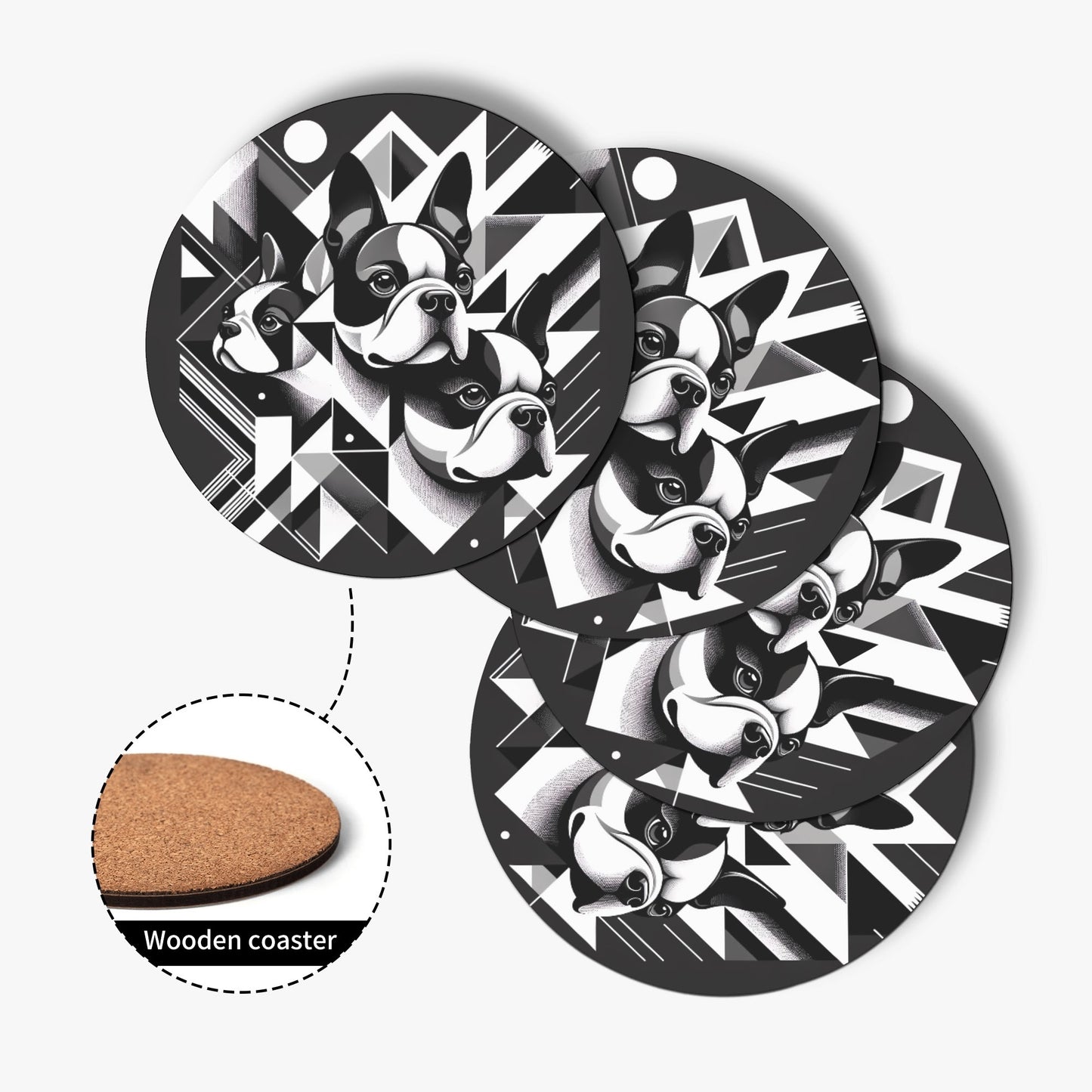 Geometric Canine Mosaic Wood Coaster (4 Pcs)