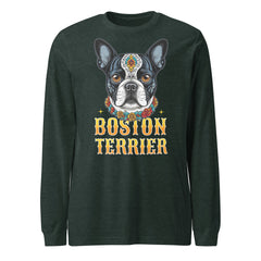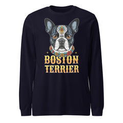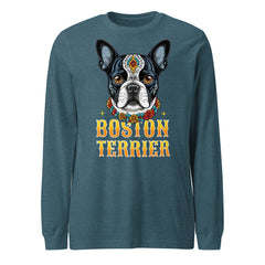 Boston Terrier Sugar Skull Long Sleeve Tee