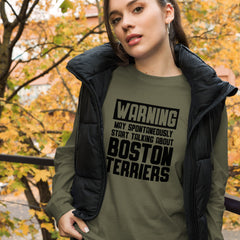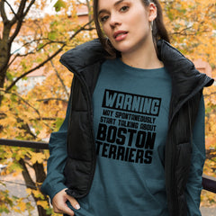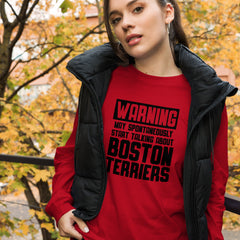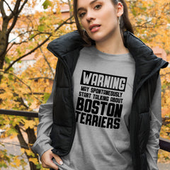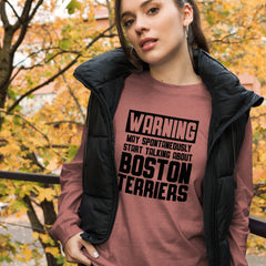 Warning May Spontaneously Start Talking About Boston Terriers Unisex Long Sleeve Tee