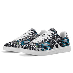 Hawaiian Boston Terrier Dog Adult Low Top PU Leather Shoes Skatebord Shoes