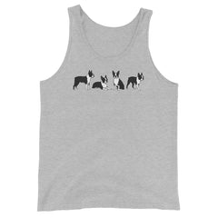 Four adorable Boston Terrier poses captured on a comfy unisex tank. Perfect for breed lovers who want to show off their pup passion with style and personality.