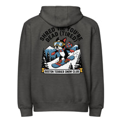 Shred Til You're Dead (Tired) Boston Terrier Snow Club Premium Zip Hoodie
