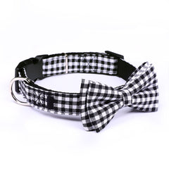 There is two elastic bands on the back of the bowtie. Easy to take off or put on the collar.