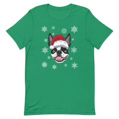 Get the Christmas Flakes Boston Terrier t-shirt.