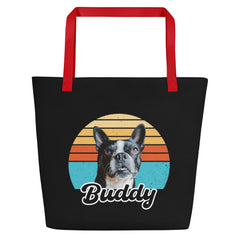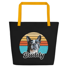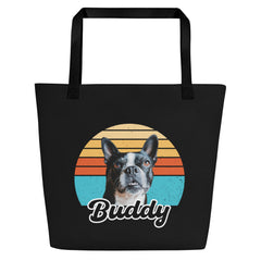 Custom Dog Sunset Vintage Retro Style Large Tote Bag