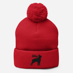 Peronalized Embroidered Boston Terrier Silhouette With Name Pom-Pom Beanie