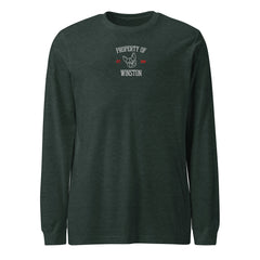 Property Of My Dog Custom Embroidered Unisex Long Sleeve Tee . Heather Forest