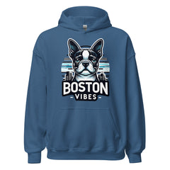Unleash the ultimate 'Boston Terrier Vibes' with our exclusive shirt design! Featuring the charming face of a Boston Terrier against a stylized city backdrop, this piece is awash in cool light blue tones, capturing the breed's spirited essence. It's not just a shirt, it's a statement for Boston Terrier enthusiasts!
