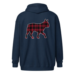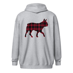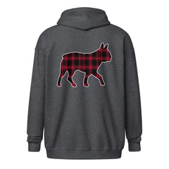 Black And Red Plaid Boston Terrier Dog Unisex Heavy Blend Zip Hoodie