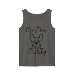For the devoted Boston Terrier father. This garment-dyed tank delivers comfort and style while showcasing your breed loyalty with understated sophistication.