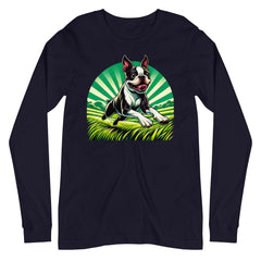 Boston Terrier Dog Running Free Unisex Long Sleeve Tee