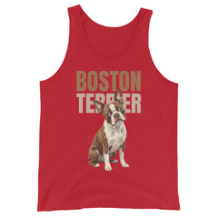 Brown Boston Terrier Dog Unisex Tank Top . Red