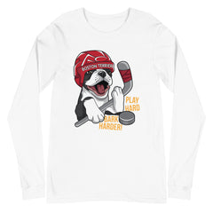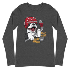 Hockey Boston Terrier Long Sleeve Tee - Play Hard Bark Harder