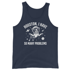 Houston, I Have So Many Problems - Funny Boston Terrier Astronaut Unisex Tank Top . Navy