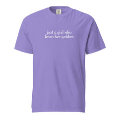 Just a girl who loves her golden retriever—and isn't afraid to show it. Soft, oversized garment-dyed tee perfect for dog lovers everywhere.