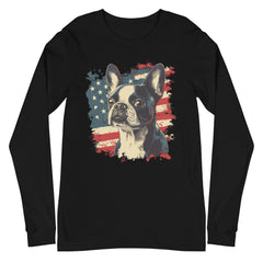 Patriotic Boston Terrier USA Flag Unisex Long Sleeve Tee