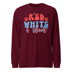 Red White and Woof 4th of July Retro Unisex Long Sleeve Tee