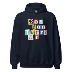 1970s British Punk Ransom Note Boston Terrier Pullover Hoodie – Vintage Dada Collage Dog Lover Unisex Hoodie