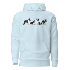 Rock four adorable Boston Terrier poses in one cozy hoodie. Perfect for breed lovers who want comfort and personality wrapped in soft, wearable art.