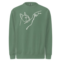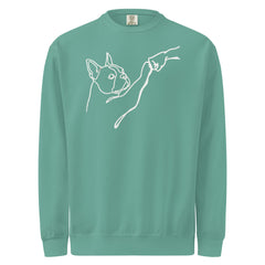Commemorate the special moment when paw meets hand with this witty fist bump illustration. Durable garment-dyed sweatshirt blends comfort with genuine dog-lover appeal.