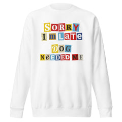 Ransom Note Style Dog Lover Shirt – Sorry I’m Late Dog Needed Me Unisex Premium Sweatshirt
