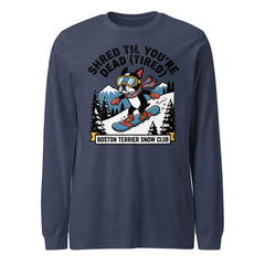 Shred Til You're Dead (Tired) Boston Terrier Snow Club Unisex Long Sleeve Tee