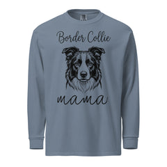 Border Collie Mama Mode Garment-dyed Heavyweight Long-sleeve Shirt . Blue Jean
