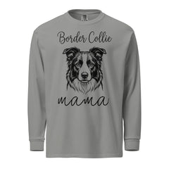Border Collie Mama Mode Garment-dyed Heavyweight Long-sleeve Shirt . Grey