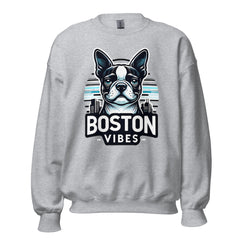 Unleash the ultimate 'Boston Terrier Vibes' with our exclusive shirt design! Featuring the charming face of a Boston Terrier against a stylized city backdrop, this piece is awash in cool light blue tones, capturing the breed's spirited essence. It's not just a shirt, it's a statement for Boston Terrier enthusiasts!
