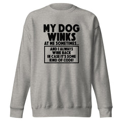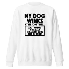 My Dog Winks At Me Sometimes And I Always Wink Back In Case Its Some Kind Of Code Unisex Premium Sweatshirt