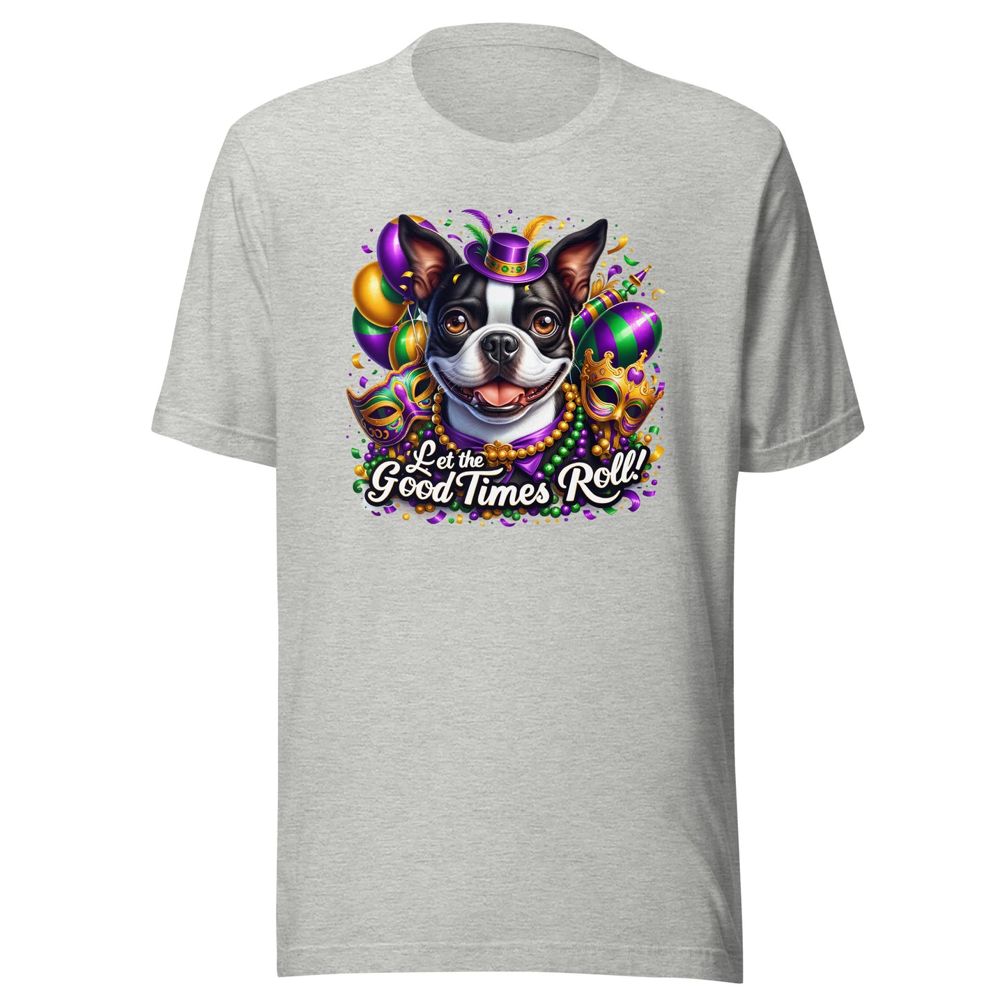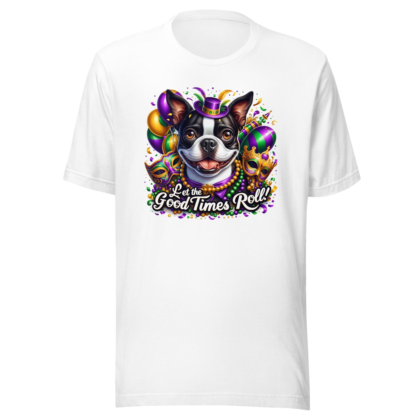 Mardi Gras Boston Terrier Unisex T-Shirt - Let The Good Times Roll!