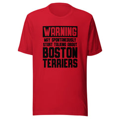 Warning May Spontaneously Start Talking About Boston Terriers Unisex T-Shirt