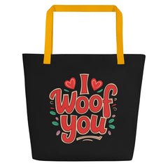 Show your love for your furry friend this Valentine's Day with the "I Woof You" large tote bag! Perfect for carrying your essentials, this spacious and stylish bag is a must-have for any dog lover. Whether you're heading out for a date or just running errands, this tote will keep you both fashionable and organized.