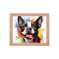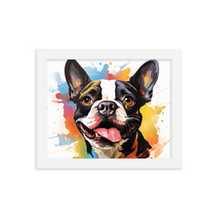 Colorful Playful Boston Terrier Dog Splash Art Framed Poster