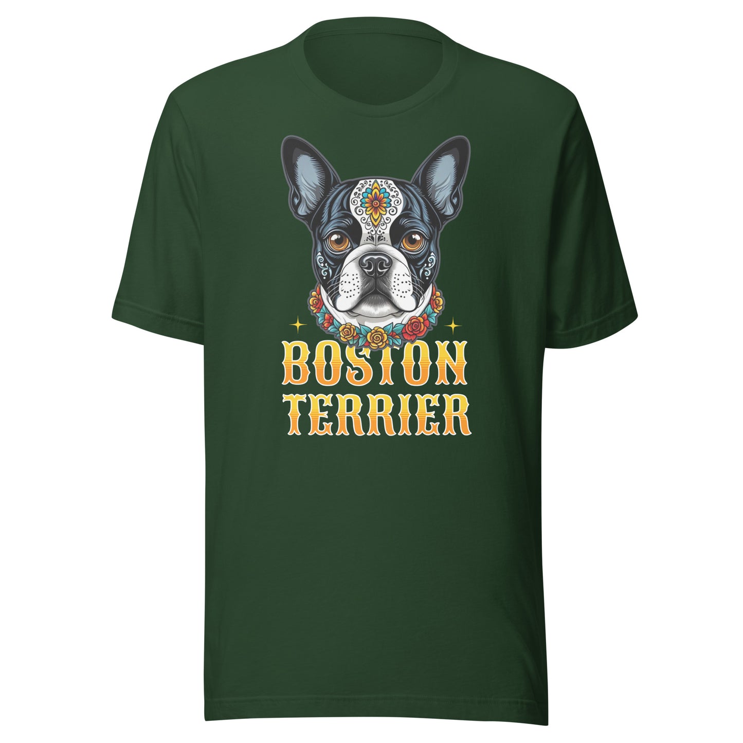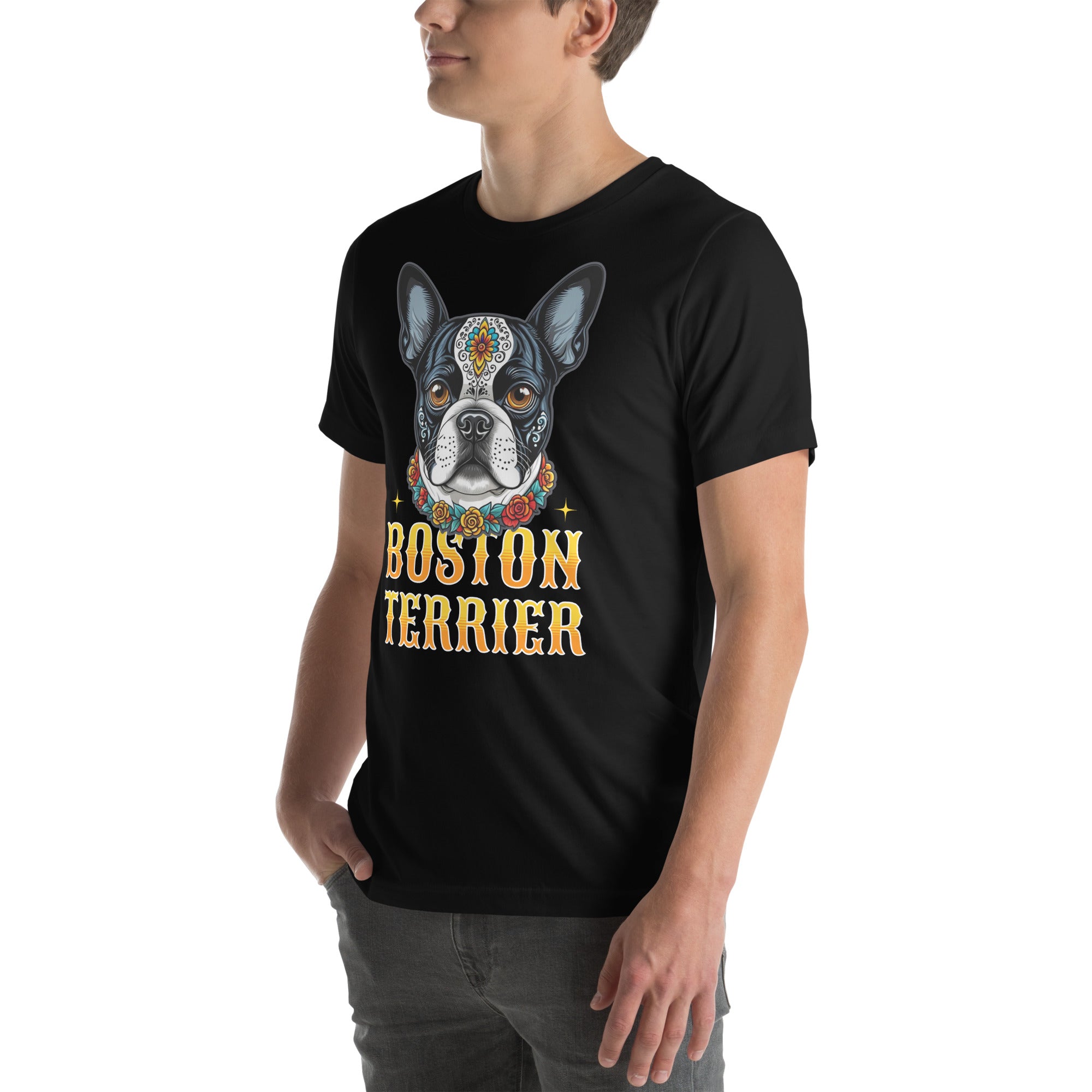 Boston Terrier Dog Sugar Skull Unisex T-Shirt